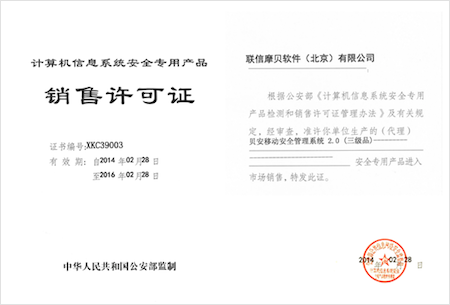 Exciting news again. As the leading mobile security product and service supplier, independent research and development of BestEMM developed by Trustmobi gained Sales Permit of the Computer Information System Safety Special Product awarded by Ministry of Public Security, which marks the domestic independent research and development of mobile security software products make another outstanding achievements.