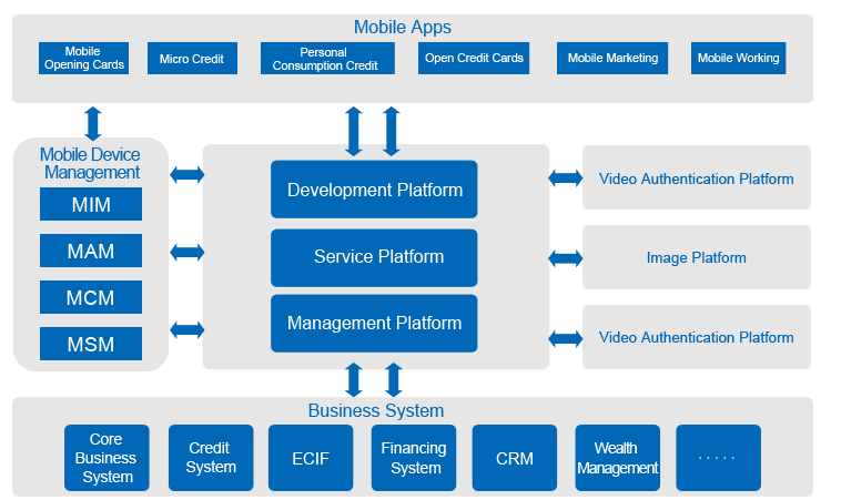Therefore, how to realize the overall management and safety control of enterprise staff in the mobile terminals, how to implement financial apps and data security management and how to integrate kinds of bank mobile business and services have become the key issues during the promotion of bank mobile app systems.
