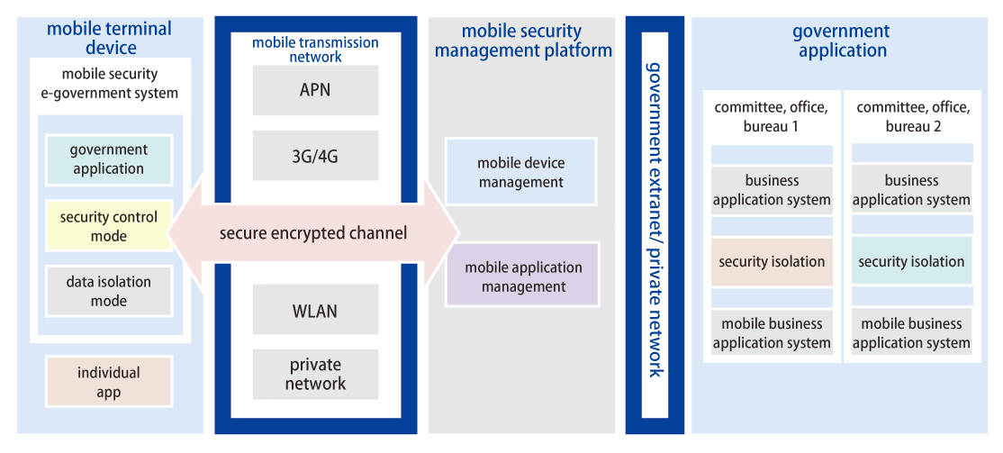 With the constant appearance of security incidents, e-government in mobile environment is faced with various security threats. Due to the specificity of government information and data, mobile government construction requires high security to ensure all kinds of government information and data use safety, access safety and storage safety. Only on the premise of ensuring safety, real and effective mobile government construction can be developed. For the mobile government, the security is basic, and the application is key.