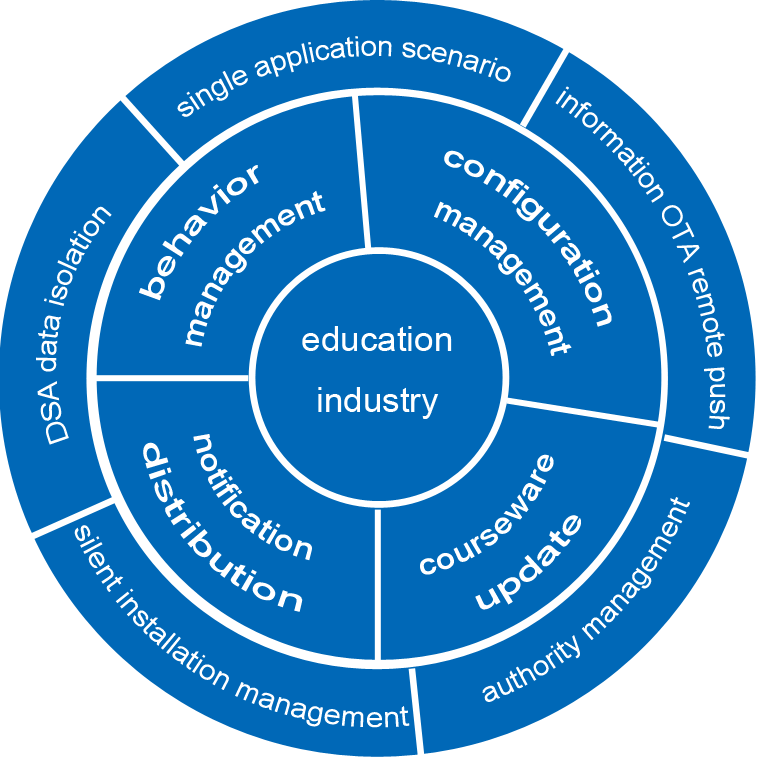 Therefore, how to realize the mobile device management and security control of education institution staff, how to keep students from using the mobile terminals to do some operations besides learning in class, how to make unified management of the devices deployed by school, and how to push school notification, apps, courseware, and teaching videos fast, have become the key problem in the promotion of education mobile informatization.